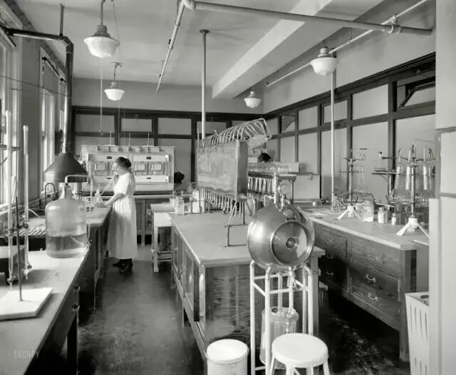 实验室是实验工作者每天工作的地方,在这里陪着他们度过了一个又一个难忘的时刻。在很久很久以前,上世纪时代,即便是简陋的实验室也不能掩盖科学家们的光芒。一个世纪前的实验室老照片,你可以看到疯狂、辉煌的另一个科学仪器时代。